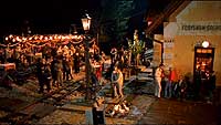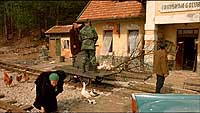 Лука. Вокруг слышны пальба и взрывы. Днем