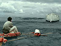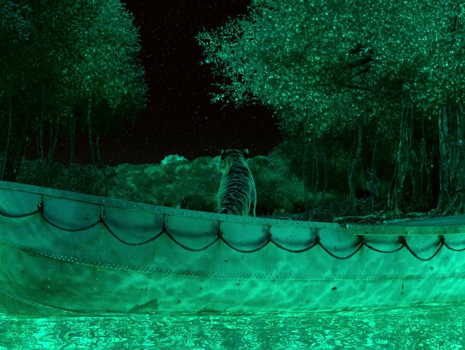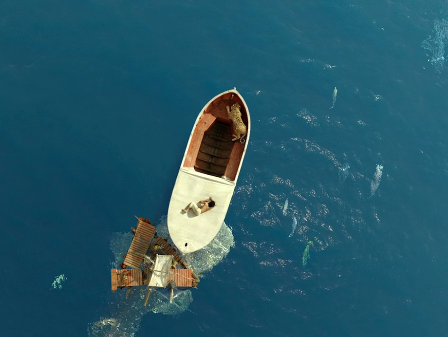 Когда Пи оказывается в одной лодке с тигром, а до конца фильма остается еще где-то один час двадцать минут, начинаешь думать, каким образом Энг Ли будет с этим выкручиваться, да еще так, чтобы не потерять зрительского внимания.
