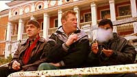 Тоже не соглашусь. Сценарий в общем и целом - вообще никакой. (Его, кстати, написал футболист Стас Мохначев.) Диалоги как таковые - тоже никак не впечатляют. (Их как раз писал Балабанов.) Две-три более или менее удачные шутки Балабанов старательно вставляет примерно через каждые десять минут на протяжении всего фильма, и это заметно утомляет, ведь, как известно, "повторенье - мать ученья" относится к чему угодно, но только не к шуткам. Ну и, кроме того, в фильме присутствует несколько "хохм", которые так просто вызывают один-единственный вопрос: "А где смеяться-то?" - например, великая "набожность" Сереги, который долго и истово крестится на каждую икону и каждую встреченную церковь. То есть оно понятно, что в этом заключается какой-то определенный юмор, но без слова "лопата" не понятно, где именно начинать смеяться...