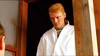 Однако были в кастинге как минимум два актера, вызвавшие массу суровых вопросов. Первый, вызывающий наиболее наболевшие вопросы, - это Алексей Панин. Впрочем, у меня его персона создает массу претензий уже давно. Я вообще не понимаю, какого черта снимают эту бездарность. Нет, может быть, он отлично сыграл бы какого-нибудь лаборанта-ботаника, однако какого черта его пихают на совершенно ему не подходящие роли - не понимаю. Еще в "Даже не думай" я не мог понять, какого черта этого парня пригласили играть в этом фильме. Но в "Жмурках" мое удивление возросло до запредельных высот. Потому что этот Сергей, в отличие от всех остальных персонажей, - он совершенно никакой! Не прикольный (как Михалков)! Не гротескный (как Дюжев и Маковецкий)! Он просто никакой! Сценарные тексты в его устах звучат настолько фальшиво, что и передать-то невозможно. Он и не крутой бандюк, и не ботаник в роли крутого бандюка. Он просто не пойми кто! Вопиющий мискастинг, который мешает от начала и до конца.