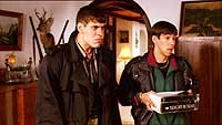 И тогда Михалыч решил дать им последнее задание: поехать к адвокату (Дмитрий Певцов), обменять там чемоданчик денег на чемоданчик - опять-таки - с белым порошочком, после чего доставить этот порошок ему, Михалычу.