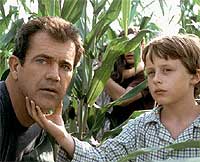 Кратко о сюжете. Грэхэм Хесс (Мэл Гибсон) - бывший священник. Полгода назад он потерял веру в Бога после того, как некий Рэй Рэдди (в его роли любезно снялся сам М. Найт Шьямалан) заснул за рулем и своим джипом убил жену Грэма. Пастор остался с двумя маленькими детьми на руках и вместо того, чтобы воспринять произошедшее как некий знак, потерял веру в Бога, запретил называть себя "святой отец" и отдался мирским делам - возделыванию поля с кукурузой и воспитанию детей.