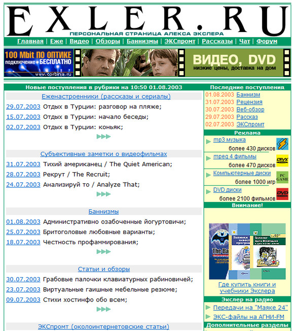 Здесь я собрал последовательно все варианты дизайнов сайта Экслер.Ру, начиная с самой первой домашней странички.