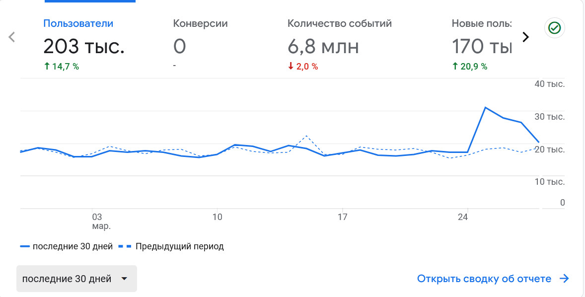Аудитория сайта по данным Гугл.Аналитики (март 2024 года). Полный доступ к статистике предоставляется по запросу.