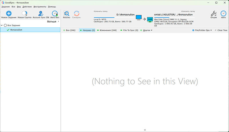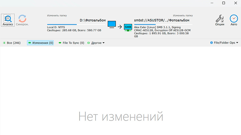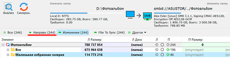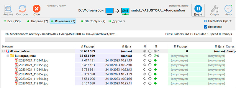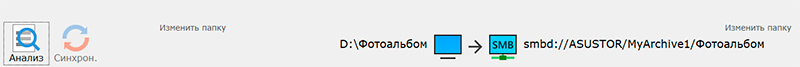 Предположим, нам нужно синхронизировать основную папку "Фотоальбом" на диске D с такой же папкой на сетевом накопителе NAS.