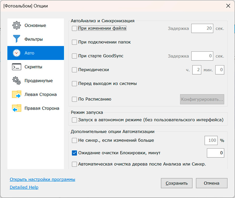 Важный момент - это все совершенно необязательно запускать вручную. GoodSync умеет все делать автоматически по тому расписанию, которое вы задаете. Настраивается это по кнопке "Авто", расположенной справа сверху.