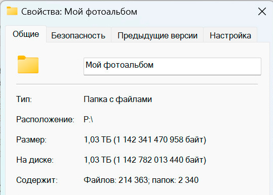 Я выбрал папку "Фотоальбом" на диске D и папку "Фотоальбом" на сетевом накопителе NAS.