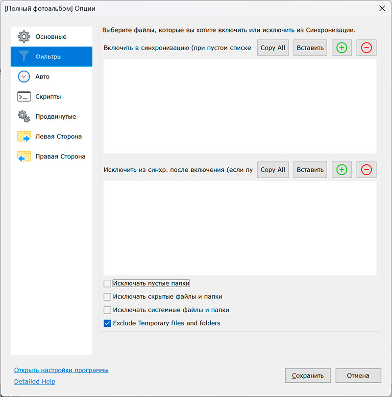 В настройках фильтров можно включать или исключать определенные виды файлов.