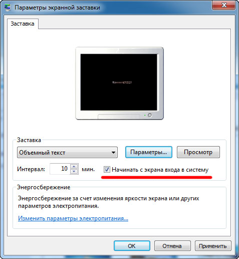 Настройки экранной заставки
