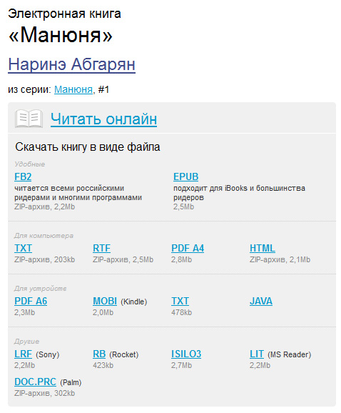 Хорошо еще, когда на сайте предлагают на выбор разные форматы - например, на сайте Litres.ru, где этот выбор очень широк.