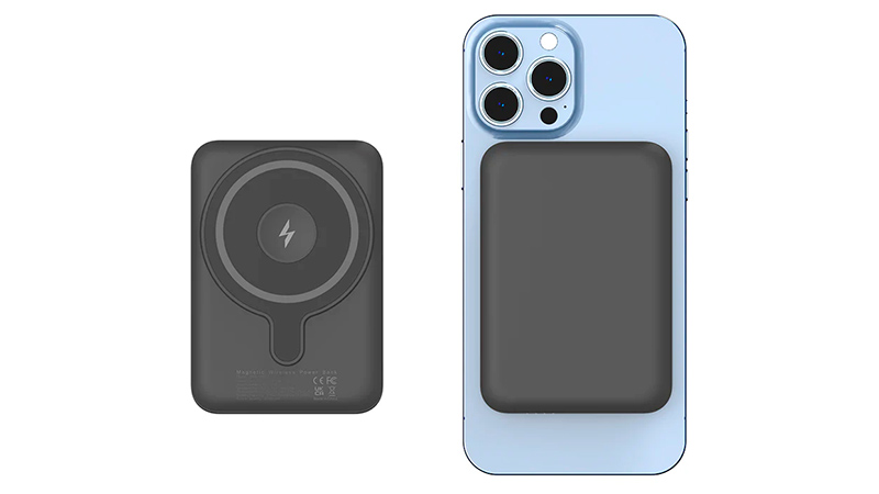 Аккумулятор с поддержкой беспроводной зарядки MagSafe и смартфон с
