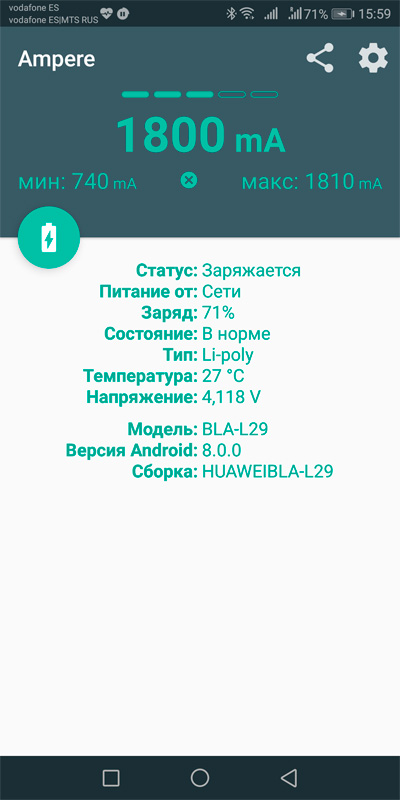 Например, вот на этом телефоне программа показывает, что смартфон получает 1,8 А (то есть 1800 миллиампер).