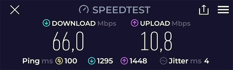Измерил скорости - да вообще отлично для нелимитированного подключения, канал не режется, полная скорость!