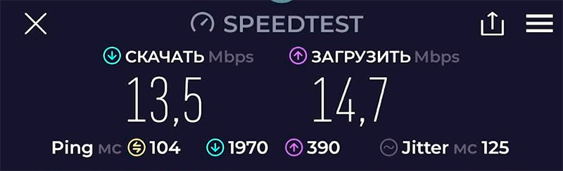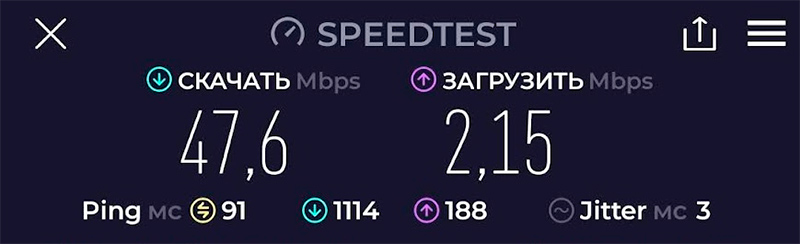 Здесь тоже потребовалось подождать какое-то время, прежде чем активировался мобильный Интернет, но все заработало, скорости вполне нормальные.