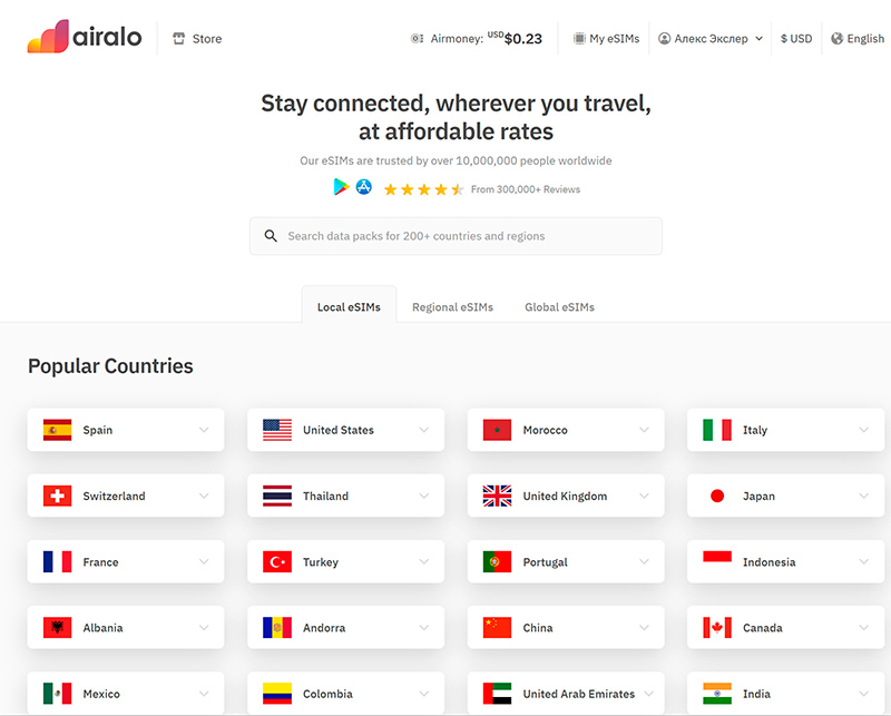Тоже известный провайдер - Airalo. Там предлагаются локальные eSIM, региональные и глобальные.