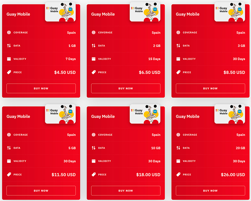 Вот, например, Испания - фиксированные планы. 10 ГБ - €1,7 за гиг, отлично.