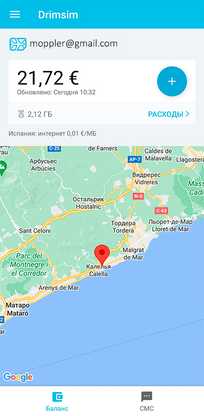 НО! Тарифы у них, как выяснилось, практически не изменились. Несколько лет назад Drimsim был хорош тем, что там не нужно было брать пакеты трафика, просто кладешь деньги на счет, видишь, сколько стоит мегабайт, с тебя помегабайтно и списывают, полный отчет ты получаешь. Тогда это стоило для Испании €0,02 за мегабайт, сейчас это стоит €0,01 за мегабайт, но это, извините, €10 за гигабайт, а по нынешним временам это очень и очень дорого! У большинства провайдеров цена гигабайта минимум в два раза меньше, а есть предложение и по €1 за гигабайт, и это на порядок (!) дешевле.