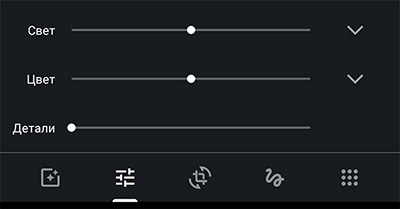 Первая пиктограмма - эффекты. Режим "Авто" обычно дает хорошие результаты для любительских фото - он слегка высветляет тени.