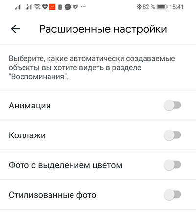 Воспоминания - интересная возможность, которая позволит Google Photos группировать определенные снимки (например, какую-то поездку или праздничное событие) в анимации, коллажи, фото с выделением цветов и стилизованные фото. Иногда при этом получаются очень любопытные ролики. Как правило, удачнее всего получаются анимации из серии каких-то снимков. Они хорошо смотрятся в самом приложении, но сохранять их в виде GIF на компьютер, чтобы применить где-то еще, не получится, качество будет неудовлетворительным. Впрочем, из смартфона они вполне нормально пересылаются в мессенджерах и показываются вполне нормально.