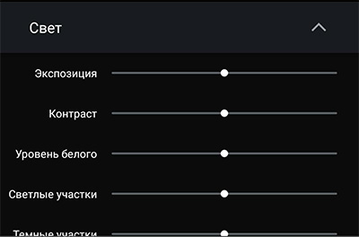 Свет. (Там скроллируется, под "Темные участки" еще есть "Виньетка".)