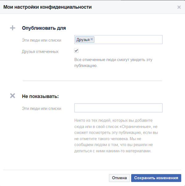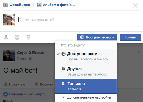 Иногда бывает нужно сделать публикацию только для себя, чтобы ее больше никто не увидел. Нет проблем: при создании публикации в настройках доступа выбираете "Только я".