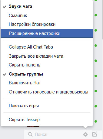В столбце чата справа выбираете в самом низу пиктограмму настроек. Там - "Расширенные настройки".
