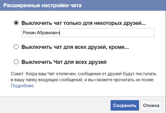 И здесь выключаете конкретных френдов из чата или же выключаете чат для всех, кроме конкретных людей.