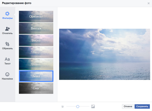 Когда вы публикуете фото в Facebook, там доступны средства редактирования, о чем мало кто знает. Если навести курсор на фото, подготовленное к публикации, справа снизу будет значок редактирования.