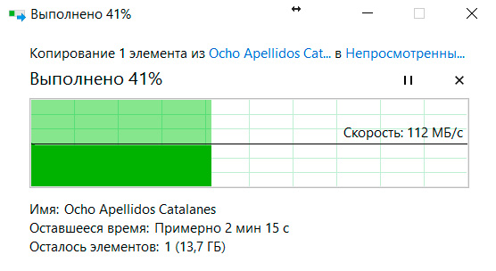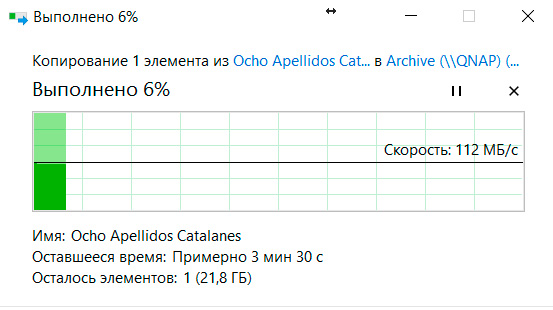 Вот копирование на диск в док-станции, подключенной к NAS.