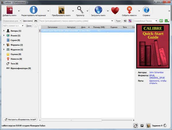 Вообще у Calibre немало всяких функций - программа умеет вести каталог вашей электронной библиотеки, сортировать и отбирать издания по куче различных критериев, редактировать метаданные книг, искать и загружать книги из Интернета и так далее.