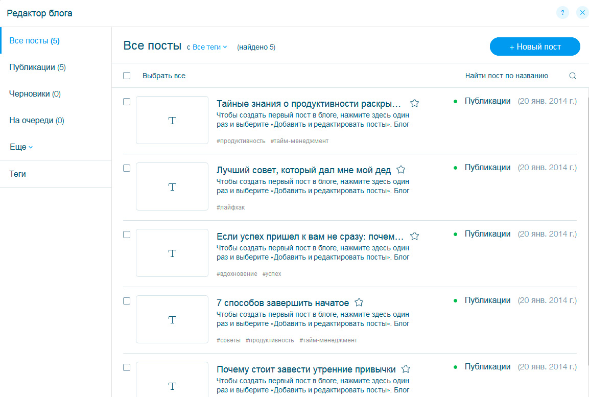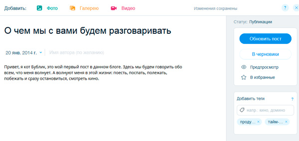 Для добавления новой записи нужно просто щелкнуть по кнопке "Добавить пост".