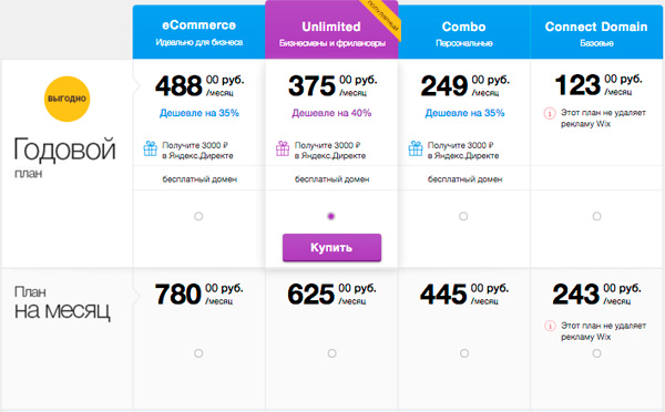 Тариф Combo (249 рублей в месяц) дает домен, отключает рекламу, предоставляет 3 Гб пространства, пропускную способность канала в 2 Гб плюс еще несколько "вкусняшек".