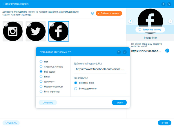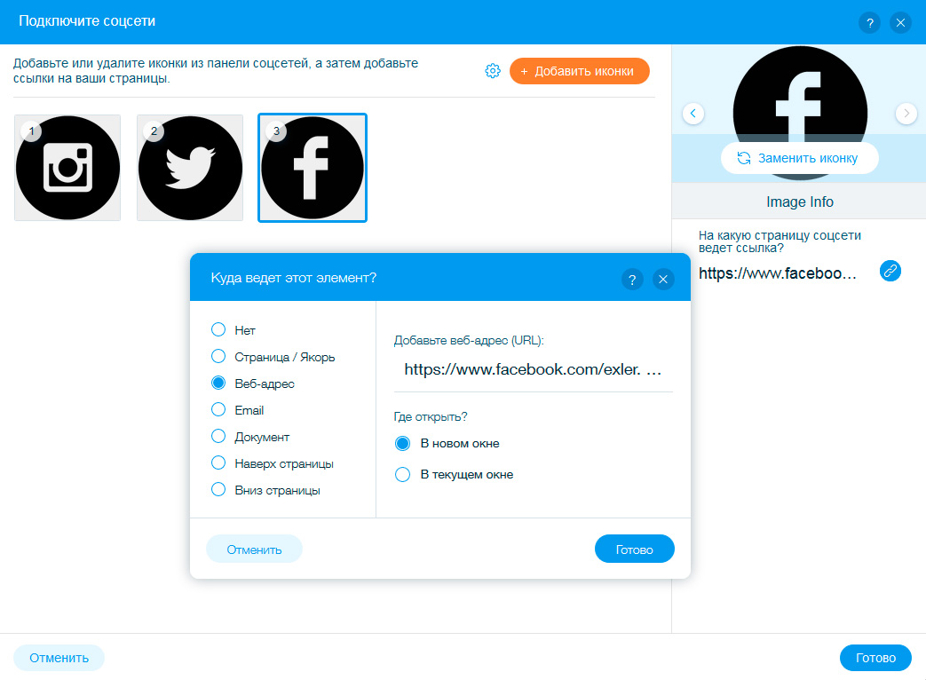 И вы можете добавить любые нужные вам соцсети из большого списка.