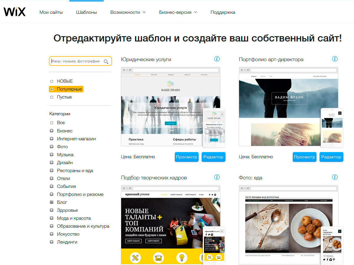 Как легко и быстро сделать свой сайт - конструктор Wix