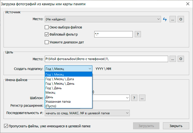 Плюс - у нее есть именно та функция, которая нам нужна: автоматическое раскладывание изображений по папкам в соответствии с заданными критериями.