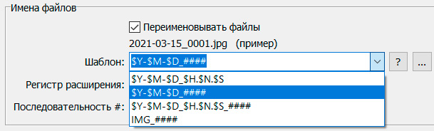 Если вы хотите еще и переименовать файлы по общему формату, то это можно задать в том же окне: там тоже есть заранее заданные варианты, которые вы также можете редактировать.
