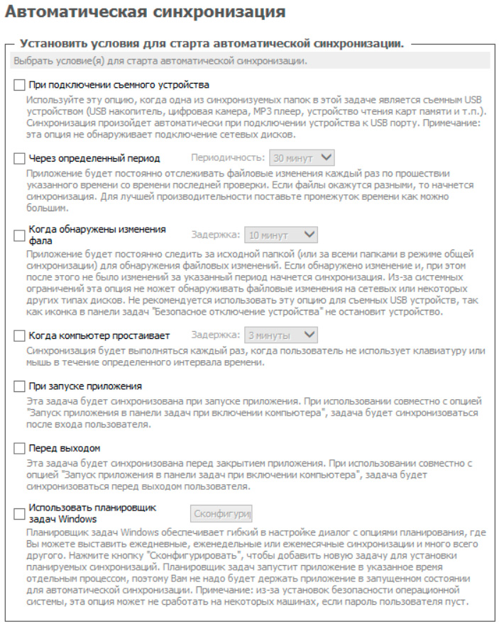 Вот настройки автоматической синхронизации.