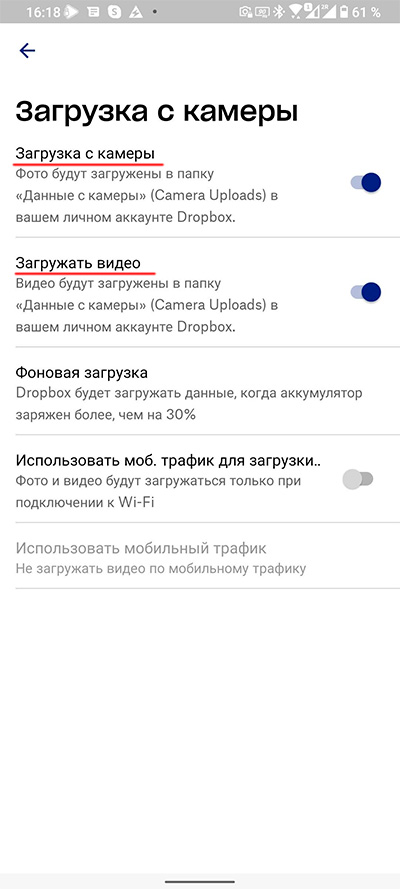 Вот, например, эта настройка у Google Photo и Dropbox.