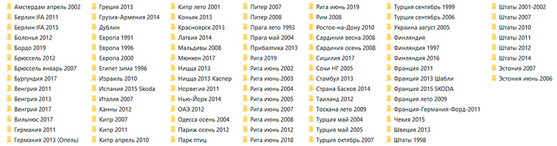 Внутри каждой папки какой-то поездки также обычно создаются тематические подпапки, что в дальнейшем значительно облегчает и обработку, и поиск с отбором.