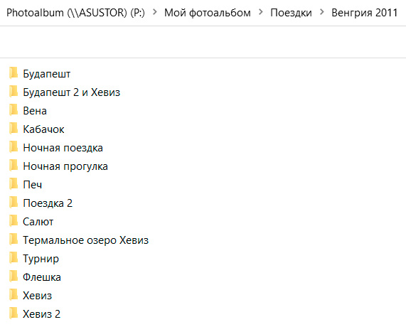 Вот, например, подпапки поездки в Венгрию в 2011 году.