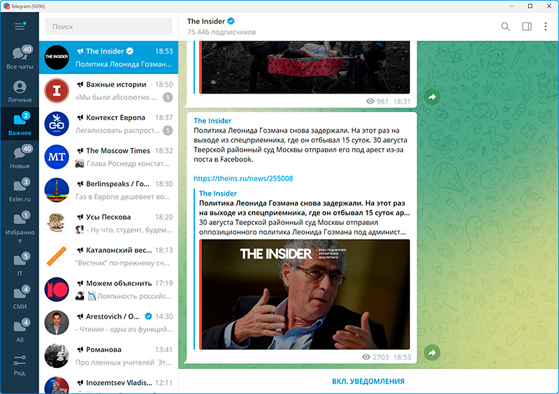 Ну и еще один момент, на который я хотел бы обратить ваше внимание. У любого канала, чата, группы есть уведомления. И если для личных сообщений от ваших контактов уведомления лучше не отключать, чтобы вы их сразу получали, то для телеграм-каналов, на которые вы подписаны, вам вряд ли нужно получать уведомления всякий раз, когда там появляется какое-то сообщение.
