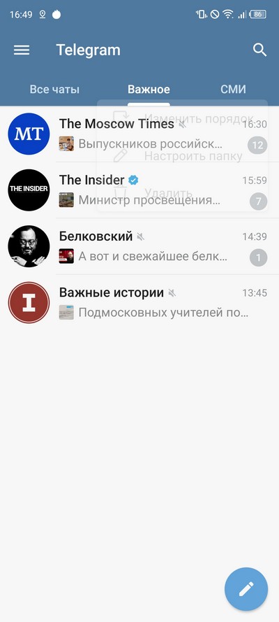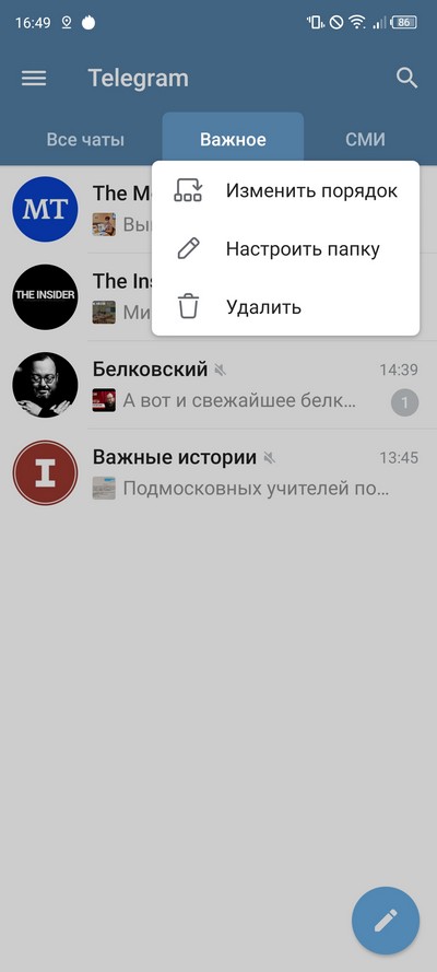 Правда, пока не понял, буду ли пользоваться: создал папки, рассортировал каналы, а смотрю все равно папку "Все чаты".