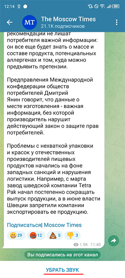 Поэтому имеет смысл при подписке на какой-то новый канал сразу отключать для него уведомления. Если понадобится, вы это всегда сможете включить позже.