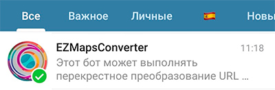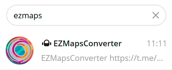 Адрес бота - https://t.me/ezmapsconverterbot. (Можно просто в Telegram набрать "ezmaps" - получите адрес бота.)