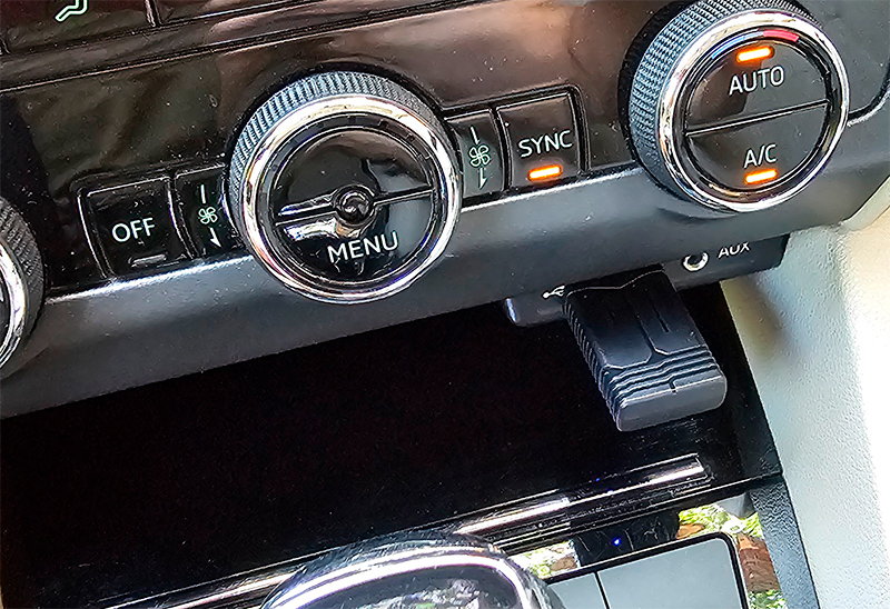 Вставил адаптер в USB-порт моей машины, ответственный за подключение к медиасистеме (к этому порту я подключаю смартфон кабелем, чтобы соединить его с Android Auto).