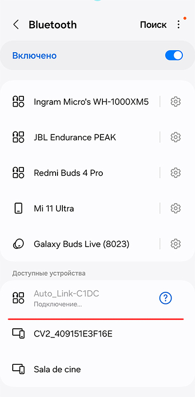 После этого на смартфоне в настройках Bluetooth нужно найти устройство Auto_Link-C1D1C и подключиться к нему. (Свою сеть WiFi адаптер тоже создает, но к ней подключаться не нужно, к ней подключение будет происходить автоматически через Android Auto/Apple CarPlay.)
