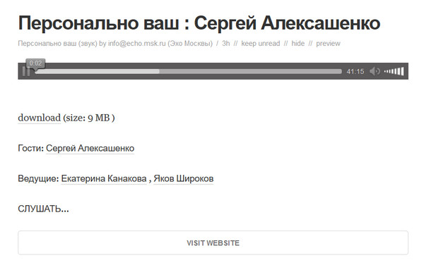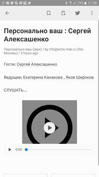 Ну и, кстати, замечу, в Feedly что для десктопов, что для смартфонов очень удобно читать текстовые подкасты - например, те же выпуски с Anekdot.ru.