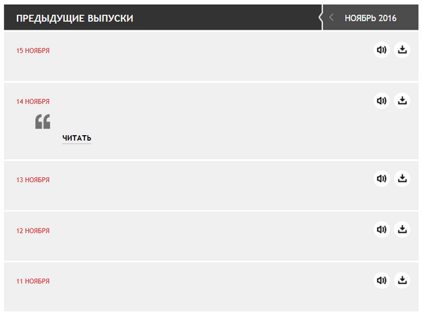 Подобный формат архивов передач встречается на сайтах многих радиостанций.