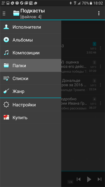 Выяснилось, правда, что у него есть бага, которую разработчики считают фичей: он не приглушает музыку при приходе нотификаций, уведомлений turn-by-turn навигации и прочем (детали тут ). Из-за этого я ушел на Music Folder Player. Но во всем прочем AIMP мне нравился больше, и если вы не пользуетесь навигацией или беговыми трекерами во время прослушивания то, возможно, это вообще не будет проблемой.