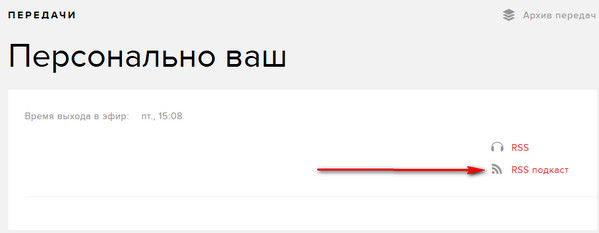 Пример. Хотите вы подписаться, например, на какую-то передачу радиостанции "Эхо Москвы". Заходите у них на сайте в раздел "Передачи". Там ищете нужную вам передачу - например, "Персонально ваш". Заходите туда, и там прямо в заголовке передачи - пиктограммы подписки на текстовую версию и на аудиоподкаст.